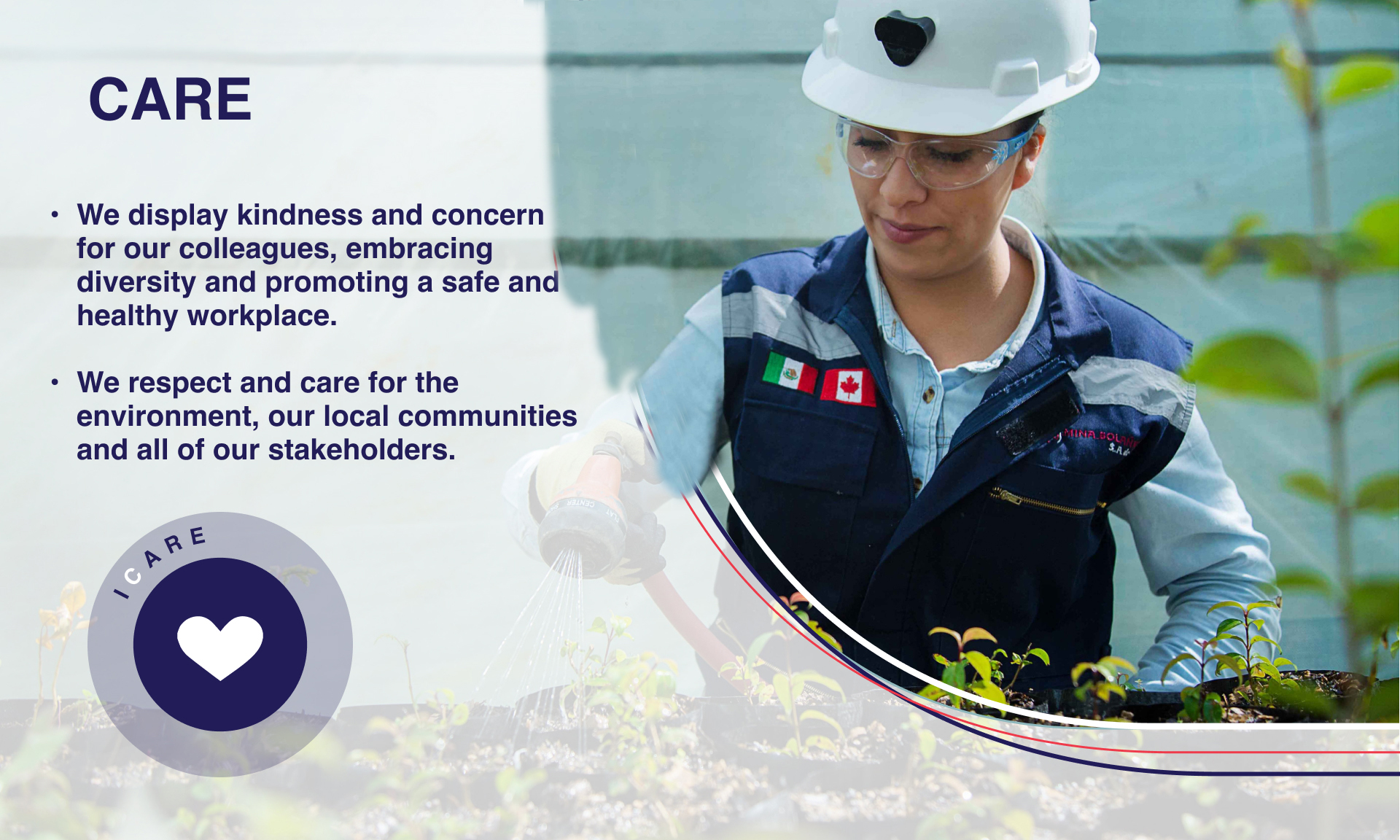 The acronym ICARE stands for Integrity, Care, Attitude, Reliability and Excellence, which are the five values defined by our leadership team along with our employees, that unite us.