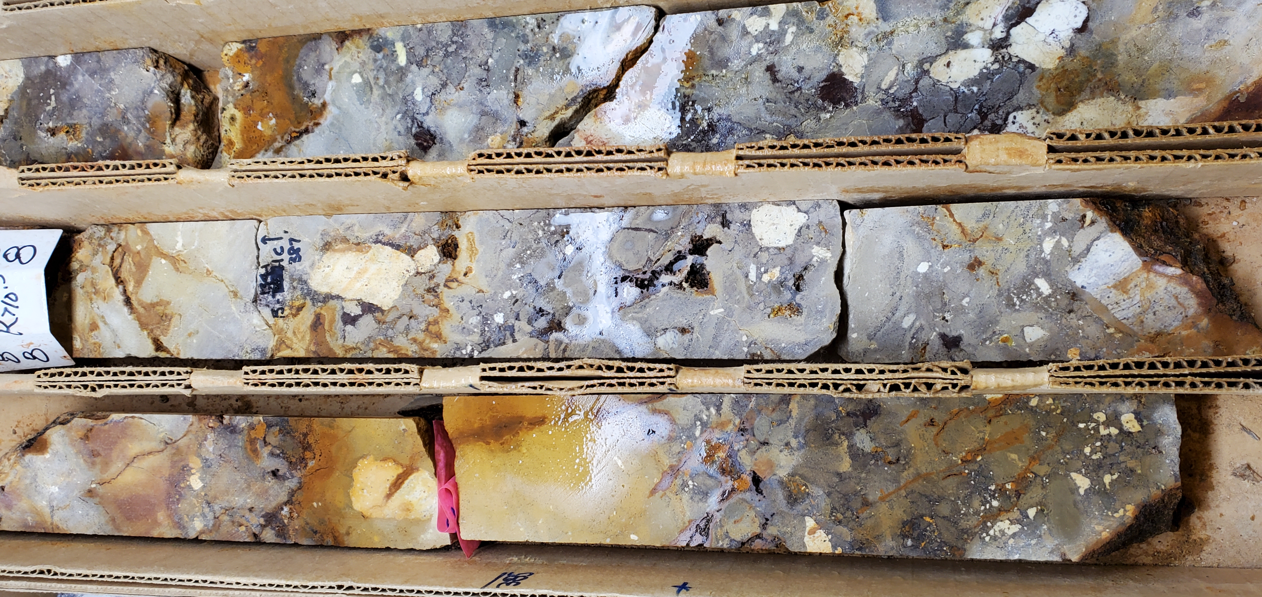 Gold and silver occurring in low-sulphidation epithermal veins and in disseminations within sheeted and stockwork zones. Three gold areas have been outlined within a broad 3 km zone of anomalous gold values.