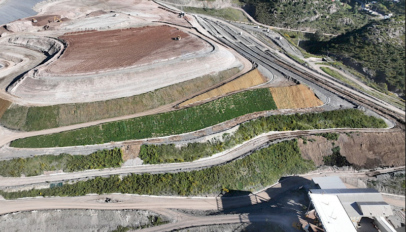 To date, the results of the tests are promising, as the before-and-after photos to the right show plant regrowth along the TSF slopes. The substrate in place has been preserved and fixed, and the vegetation is self-supporting. Monitoring will continue during 2025 to evaluate progress of our efforts.