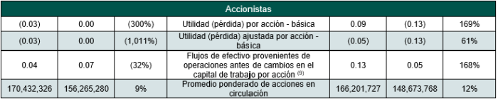 (cifras en miles de dólares de los EE.UU., salvo por acciones y montos por acción)Este estado financiero se debe leer junto con los estados financieros consolidados condensados correspondientes al periodo terminado el 30 de septiembre de 2021 y las notas relativas contenidas en los mismos.