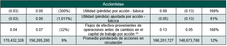 COMPARATIVO DE ASPECTOS DESTACADOSLos hechos destacados arriba mencionados constituyen métricas clave que utiliza la administración; sin embargo, no deben ser las únicas medidas que se utilicen en la evaluación del desempeño de las operaciones de la Compañía. Las conciliaciones y definiciones relacionadas se incluyen en los Comentarios y Análisis de la Administración.