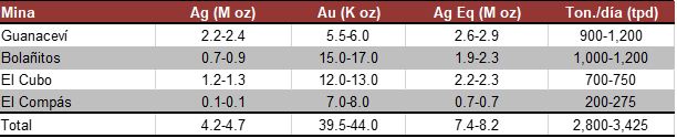 - Se obtuvieron resultados positivos de los sondeos que se llevaron a cabo en Bolañitos y Guanaceví como parte de sus programas de perforación